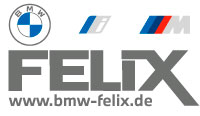 Das Logo der FELIX Automobile GmbH besteht aus dem Wort „FELIX“ mit der Unterschrift „www.bmw-felix.de“. Über der Schrift die Zeichen der Marken BMW, BMWi und BMW M. Das Logo ist auf weißem Grund befindlich.
